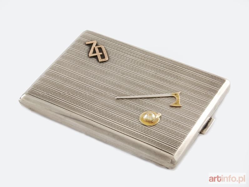 srebro cechowane próby 3 częściowo złocone (punca KS pod koroną); złoto; wys. 1,5 cm, szer. 11 cm, głęb. 8 cm; waga 145 g. Warszawa, lata 30. XX w.