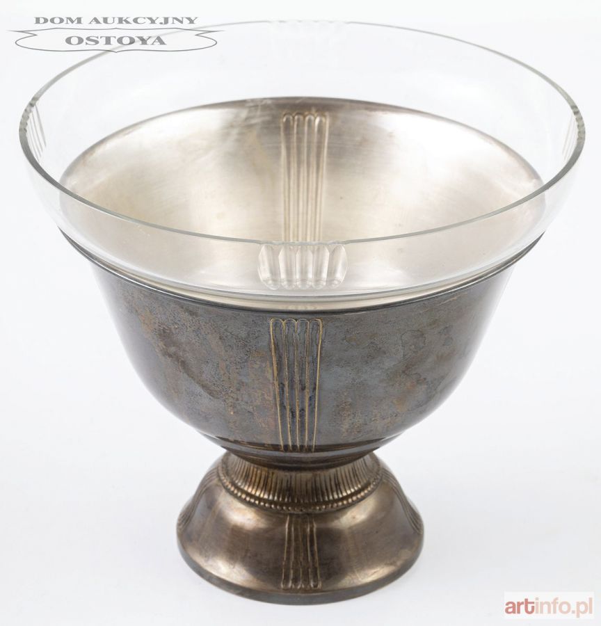 Plater na nowym srebrz,e, wkład szkło bezbarwne, szlifowane, wys. 18,7, śr. 21,5 cm