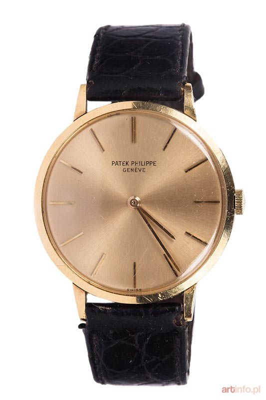 złoto pr. 0,750, m. brutto: 32,22 g koperta śr. 34 mm, nr 2689946; nr ref.: 3468, mechanizm z naciągiem manualnym nr 1.153.416, cal. 23-300 PM, 18 kamieni, sygn. na tarczy: PATEK PHILIPPE/GENEVE; zegarek posiada certyfikat autentyczności wydany prz