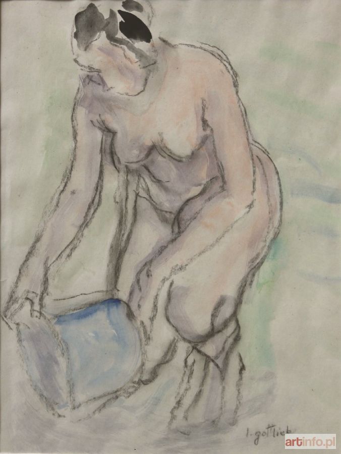 Najmłodszy brat Maurycego Gottlieba, wybitnego malarza dziewiętnastowiecznego pochodzenia żydowskiego. Studia artystyczne odbył w l. 1896-1902 w krakowskiej ASP pod kierunkiem J. Malczewskiego i T. Axentowicza. Naukę kontynuował w Monachium w pracowni A. Ažbego. W 1904 r. zamieszkał na stałe w Paryżu. Był członkiem wiedeńskiego "Haagenbundu" i inicjatorem powstania krakowskiej "Grupy Pięciu" (1905). W l. 1917-1919 uczestniczył w wystawach formistów. W Paryżu związany był ze środowiskiem Montparnasse'u, szczególnie blisko z M. Kislingiem i E. Zakiem. Przedstawioną w oferowanym obrazie symboliczną scenę rozgrywającą się na tle górzystego pejzażu można interpretować jako ilustrację ewangelicznej przypowieści o miłosiernym Samarytaninie, który udziela pomocy napotkanemu na drodze podróżnemu. Jak w wielu obrazach Gottlieba - często wyobrażających biblijne motywy - najważniejsze wydaje się ograniczenie gamy barwnej do tonów rudawych brązów i zieleni oraz linearny rytm kompozycji, który budują łukowate odcinki linii powtarzające się zarówno w ludzkich postaciach jak i w pejzażu. Rytm ten sprawia, że obraz zyskuje cechy muzyczne, i że opowiedziane w Ewangelii zdarzenie przeobraża się w dziele Gottlieba w rytualny obrzęd stanowiąc jednocześnie żywą alegorią chrześcijańskiej cnoty Caritas. Przestylizowane postacie o uwysmuklonych proporcjach i umownie zaznaczonych rysach wpisane w ekspresyjnie spłaszczoną przestrzeń obrazową zyskują walor dekoratywności. Analogiczne cechy stylistyczne wykazuje należący do kolekcji W. Fibaka obraz "Chrystus w łodzi" z 1919 r. (repr. w katalogu "Malarstwo polskie w kolekcji Ewy i Wojciecha Fibaków, Muzeum Narodowe w Warszawie 1992, s. 82; "Ecole de Paris. Artyści żydowscy z Polski w kolekcji Wojciecha Fibaka, Muzeum Historii Miasta Łodzi 1998-1999, s. 44)