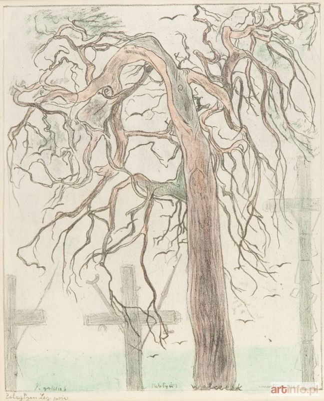 litografia barwna/papier, 36 x 29 cm (w świetle passe-partout) sygnowany i datowany na płycie l. d.: `l. gottlieb` p. d.: `cmentarz 916`