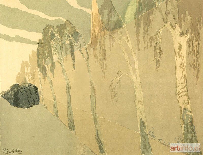 Najmłodszy brat Maurycego Gottlieba, wybitnego malarza dziewiętnastowiecznego pochodzenia żydowskiego. Studia artystyczne odbył w l. 1896-1902 w krakowskiej ASP pod kierunkiem J. Malczewskiego i T. Axentowicza. Naukę kontynuował w Monachium w pracowni A. Ažbego. W 1904 r. zamieszkał na stałe w Paryżu. Był członkiem wiedeńskiego "Haagenbundu" i inicjatorem powstania krakowskiej "Grupy Pięciu" (1905). W l. 1917-1919 uczestniczył w wystawach formistów. W Paryżu związany był ze środowiskiem Montparnasse'u, szczególnie blisko z M. Kislingiem i E. Zakiem. Przedstawioną w oferowanym obrazie symboliczną scenę rozgrywającą się na tle górzystego pejzażu można interpretować jako ilustrację ewangelicznej przypowieści o miłosiernym Samarytaninie, który udziela pomocy napotkanemu na drodze podróżnemu. Jak w wielu obrazach Gottlieba - często wyobrażających biblijne motywy - najważniejsze wydaje się ograniczenie gamy barwnej do tonów rudawych brązów i zieleni oraz linearny rytm kompozycji, który budują łukowate odcinki linii powtarzające się zarówno w ludzkich postaciach jak i w pejzażu. Rytm ten sprawia, że obraz zyskuje cechy muzyczne, i że opowiedziane w Ewangelii zdarzenie przeobraża się w dziele Gottlieba w rytualny obrzęd stanowiąc jednocześnie żywą alegorią chrześcijańskiej cnoty Caritas. Przestylizowane postacie o uwysmuklonych proporcjach i umownie zaznaczonych rysach wpisane w ekspresyjnie spłaszczoną przestrzeń obrazową zyskują walor dekoratywności. Analogiczne cechy stylistyczne wykazuje należący do kolekcji W. Fibaka obraz "Chrystus w łodzi" z 1919 r. (repr. w katalogu "Malarstwo polskie w kolekcji Ewy i Wojciecha Fibaków, Muzeum Narodowe w Warszawie 1992, s. 82; "Ecole de Paris. Artyści żydowscy z Polski w kolekcji Wojciecha Fibaka, Muzeum Historii Miasta Łodzi 1998-1999, s. 44)