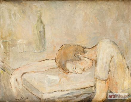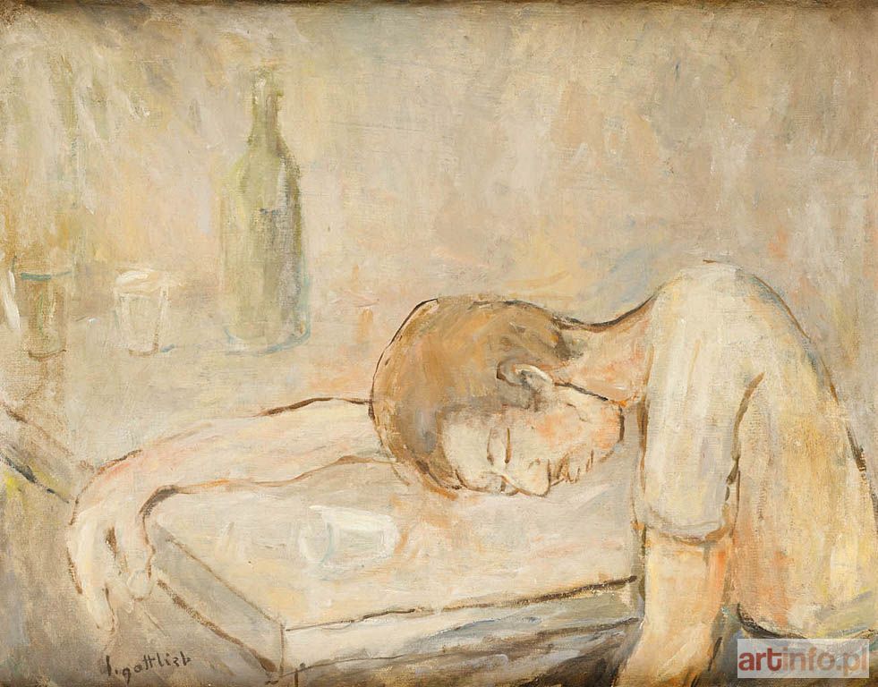 Najmłodszy brat Maurycego Gottlieba, wybitnego malarza dziewiętnastowiecznego pochodzenia żydowskiego. Studia artystyczne odbył w l. 1896-1902 w krakowskiej ASP pod kierunkiem J. Malczewskiego i T. Axentowicza. Naukę kontynuował w Monachium w pracowni A. Ažbego. W 1904 r. zamieszkał na stałe w Paryżu. Był członkiem wiedeńskiego "Haagenbundu" i inicjatorem powstania krakowskiej "Grupy Pięciu" (1905). W l. 1917-1919 uczestniczył w wystawach formistów. W Paryżu związany był ze środowiskiem Montparnasse'u, szczególnie blisko z M. Kislingiem i E. Zakiem. Przedstawioną w oferowanym obrazie symboliczną scenę rozgrywającą się na tle górzystego pejzażu można interpretować jako ilustrację ewangelicznej przypowieści o miłosiernym Samarytaninie, który udziela pomocy napotkanemu na drodze podróżnemu. Jak w wielu obrazach Gottlieba - często wyobrażających biblijne motywy - najważniejsze wydaje się ograniczenie gamy barwnej do tonów rudawych brązów i zieleni oraz linearny rytm kompozycji, który budują łukowate odcinki linii powtarzające się zarówno w ludzkich postaciach jak i w pejzażu. Rytm ten sprawia, że obraz zyskuje cechy muzyczne, i że opowiedziane w Ewangelii zdarzenie przeobraża się w dziele Gottlieba w rytualny obrzęd stanowiąc jednocześnie żywą alegorią chrześcijańskiej cnoty Caritas. Przestylizowane postacie o uwysmuklonych proporcjach i umownie zaznaczonych rysach wpisane w ekspresyjnie spłaszczoną przestrzeń obrazową zyskują walor dekoratywności. Analogiczne cechy stylistyczne wykazuje należący do kolekcji W. Fibaka obraz "Chrystus w łodzi" z 1919 r. (repr. w katalogu "Malarstwo polskie w kolekcji Ewy i Wojciecha Fibaków, Muzeum Narodowe w Warszawie 1992, s. 82; "Ecole de Paris. Artyści żydowscy z Polski w kolekcji Wojciecha Fibaka, Muzeum Historii Miasta Łodzi 1998-1999, s. 44)