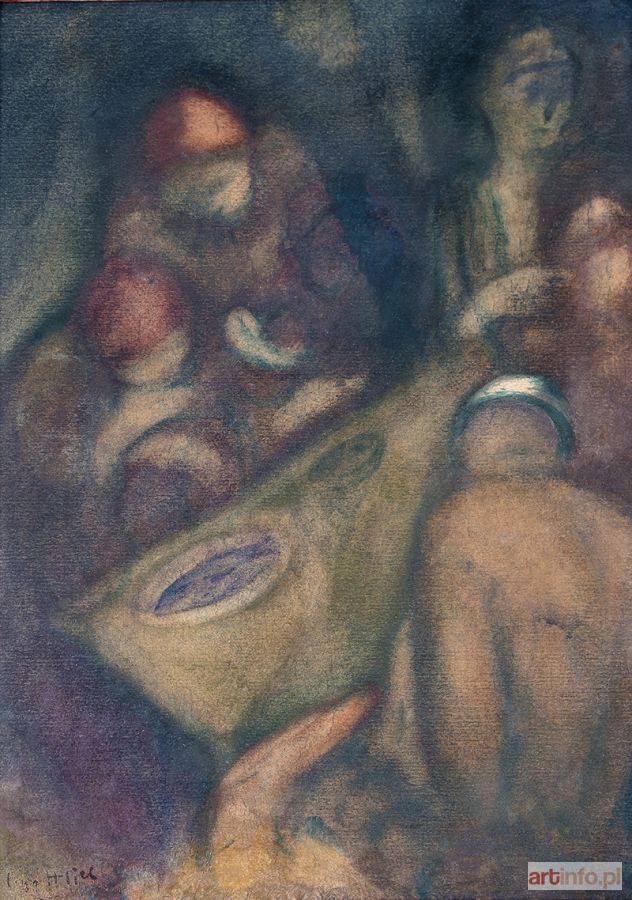 Najmłodszy brat Maurycego Gottlieba, wybitnego malarza dziewiętnastowiecznego pochodzenia żydowskiego. Studia artystyczne odbył w l. 1896-1902 w krakowskiej ASP pod kierunkiem J. Malczewskiego i T. Axentowicza. Naukę kontynuował w Monachium w pracowni A. Ažbego. W 1904 r. zamieszkał na stałe w Paryżu. Był członkiem wiedeńskiego "Haagenbundu" i inicjatorem powstania krakowskiej "Grupy Pięciu" (1905). W l. 1917-1919 uczestniczył w wystawach formistów. W Paryżu związany był ze środowiskiem Montparnasse'u, szczególnie blisko z M. Kislingiem i E. Zakiem. Przedstawioną w oferowanym obrazie symboliczną scenę rozgrywającą się na tle górzystego pejzażu można interpretować jako ilustrację ewangelicznej przypowieści o miłosiernym Samarytaninie, który udziela pomocy napotkanemu na drodze podróżnemu. Jak w wielu obrazach Gottlieba - często wyobrażających biblijne motywy - najważniejsze wydaje się ograniczenie gamy barwnej do tonów rudawych brązów i zieleni oraz linearny rytm kompozycji, który budują łukowate odcinki linii powtarzające się zarówno w ludzkich postaciach jak i w pejzażu. Rytm ten sprawia, że obraz zyskuje cechy muzyczne, i że opowiedziane w Ewangelii zdarzenie przeobraża się w dziele Gottlieba w rytualny obrzęd stanowiąc jednocześnie żywą alegorią chrześcijańskiej cnoty Caritas. Przestylizowane postacie o uwysmuklonych proporcjach i umownie zaznaczonych rysach wpisane w ekspresyjnie spłaszczoną przestrzeń obrazową zyskują walor dekoratywności. Analogiczne cechy stylistyczne wykazuje należący do kolekcji W. Fibaka obraz "Chrystus w łodzi" z 1919 r. (repr. w katalogu "Malarstwo polskie w kolekcji Ewy i Wojciecha Fibaków, Muzeum Narodowe w Warszawie 1992, s. 82; "Ecole de Paris. Artyści żydowscy z Polski w kolekcji Wojciecha Fibaka, Muzeum Historii Miasta Łodzi 1998-1999, s. 44)