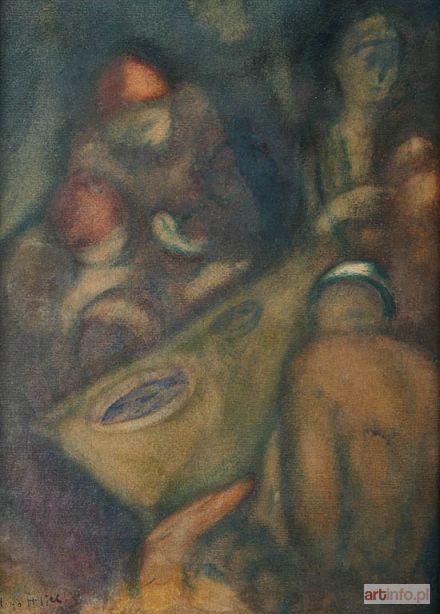 W Paryżu związany był ze środowiskiem Montparnasse `u, szczególnie blisko z kręgiem M. Kislinga i E. Zaka. Od l. 20. przeważały w jego malarstwie wielofiguralne kompozycje przedstawiające sceny pracy i posiłku. Ekspresyjnie spłaszczoną przestrzeń obrazową wypełniały eteryczne sylwetki ludzkie o przestylizowanych, wysmuklonych proporcjach, obwiedzione niekiedy czarnym, łamliwym konturem. Symboliczną wymowę tych obrazów intensyfikowała mroczna, zgaszona gama barw. Oferowana praca bardzo dobrze wpisuje się w nurt tej twórczości artysty.