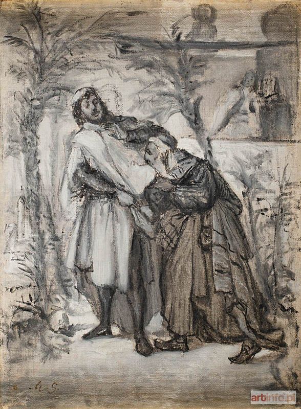„Jestem Polakiem i Żydem i chcę dla obu, gdy Bóg da, pracować” - pisał do przyjaciela Maurycy Gottlieb - wybitnie utalentowany, młodo zmarły artysta, który w swej sztuce łączył przywiązanie do żydowskiej tradycji z patriotyzmem i świadomością Polaka. Edukację artystyczną rozpoczął we Lwowie, gdzie od roku 1869 uczył się rysunku u M.Godlewskiego. W 1871 wyjechał do Wiednia i przez dwa lata studiował u profesorów K.Mayera i K.von Blaasa. Na wiedeńskiej wystawie w 1873 zetknął się z obrazami Matejki, które wywarły na nim ogromne wrażenie i wzbudziły pragnienie zostania „polskim artystą”. Przeniósł się wówczas do Krakowa i w roku 1873-1874 studiował w tamtejszej Szkole Sztuk Pięknych, pod kierunkiem podziwianego Matejki. Uczestniczył w wystawie prac uczniów Szkoły. W następnym roku akademickim wrócił do Wiednia i został studentem w „Meisterschuli” K.Wurzingera.