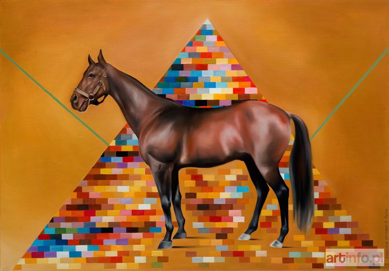 olej/płótno, 70 x 100 cm sygnowany p.d.: `PIRAMIDA ZWIERZE-Ń łm 2015`