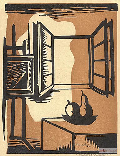 SIELSKI Roman | Martwa natura z owocami, sztalugą i otwartym oknem 1932