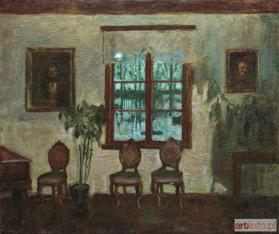 Obraz jest zapewne tożsamy z Wnętrzem w księżycowej poświacie wystawionym w roku 1936 w warszawskim Towarzystwie Zachęty Sztuk Pięknych.
