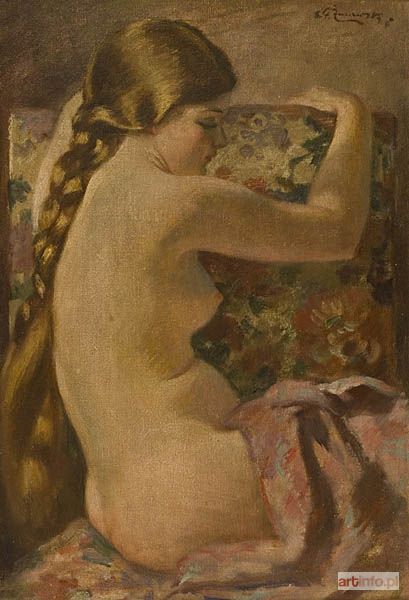 Niezwykle zmysłowy akt młodej kobiety dzięki specyficznemu oświetleniu nabiera tajemniczości i nastrojowości. Ciemne opuszczone rzęsy, zaróżowione policzki sprawiają wrażenie zawstydzenia i nieśmiałości. Tkanina, na której tle umieszczona została postać, podkreśla delikatność i świetlistość kobiecego ciała.