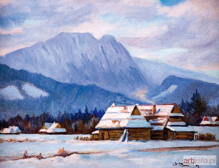 Olej, tektura; 30 x 40 cm Sygnowany p.d.: St. Żurawski Na odwrocie napis niebieską kredką: Stanisław Żurawski | Giewont w Zakopanem | widziany z Olczy
