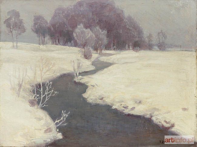 Olej, płótno naklejone na tekturę; 27x 36 cm, Sygnowany p. d. brązowym olejem T. ZIOMEK 1913