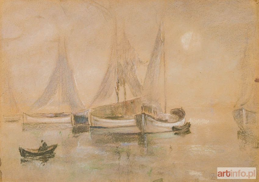 Wacław Żaboklicki uczył się w warszawskiej Szkole Rysunkowej w latach 1897-99 u Wojciecha Gersona. Następnie w latach 1901-03 u Antona Abégo w Akademii monachijskiej, skąd wyjechał do paryskiej Académie Colarossi. Wiele podróżował: był w Rosji, Włoszech, Francji. Jego ulubionym tematem był pejzaż. Współcześni mu krytycy zaliczali go do szkoły Władysława Ślewińskiego i wskazywali na francuski, impresjonistyczny rodowód jego sztuki. Od 1922 był członkiem działającego przy warszawskim Towarzystwie Zachęty Sztuk Pięknych Koła Marynistów Polskich. W jasnych stonowanych barwach szarości, bieli, błękitu, delikatnie przymglonych, z niezwykłą lekkością namalowany został widok zatoki. Łodzie z postawionymi żaglami zastygły w bezruchu przedstawił artysta w różnorodnych pozycjach. Po prawej stronie kompozycji mocny akcent stanowi malutka skorupa łódki rybackiej z ciemno zarysowaną sylwetką siedzącej w niej postaci. Ulubiona technika artysty zastosowana do obrazu sprawia, że delikatność wilgotnej mgły staje się wręcz odczuwalna.