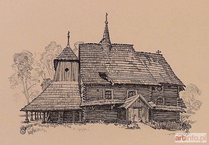 autolitografia z teki "Zabytki Sztuki Rodzimej Polski Zach. Zeszyt 3 Woj. Śląskie", Poznań 1925, egzemplarz 390/500, tabl. 22, 18 x 29 cm sygn. monogr. na kamieniu p.d.: AWG