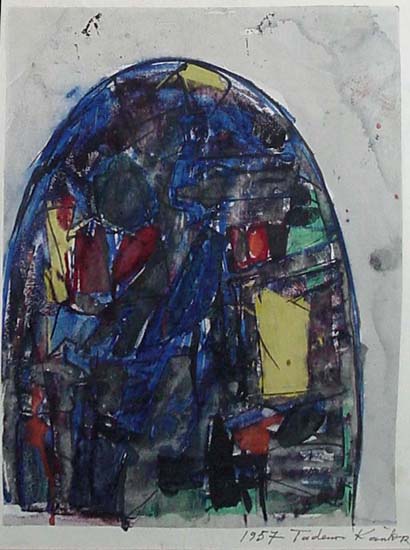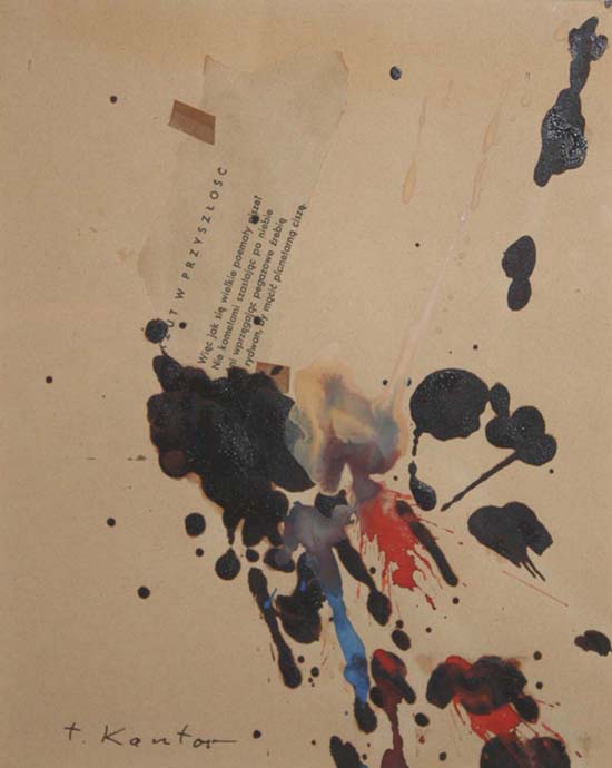 Tadeusz Kantor reżyser, twórca happeningów, malarz, scenograf, pisarz, teoretyk sztuki, aktor we własnych przedstawieniach, wykładowca krakowskiej ASP, jeden z najsławniejszych nowatorskich polskich artystów XX w. Urodził się w 1915 r w Wielopolu Skrzyńskim k. Tarnowa, zmarł w 1990 r w Krakowie. Studiował w krakowskiej ASP w latach 1934-39, początkowo u Władysława Jarockiego i Józefa Pieńkowskiego, a od 1937 pod kierunkiem Karola Frycza. W czasie okupacji w 1942 założył konspiracyjny "Teatr podziemny", wokół którego koncentrowało się życie artystyczne Krakowa. Teatr ten po wojnie, pod nazwą "Cricot 2", kontynuował tradycje teatru plastyków "Cricot" założonego przez Józefa Jaremę. Współtworzył Grupę Młodych Plastyków - 1945, a następnie II Grupę Krakowską - 1957. Współorganizator I Wystawy Sztuki Nowoczesnej - Kraków 1948. Uprawiał malarstwo, był reżyserem teatralnym, scenografem, organizatorem pierwszych w Polsce happeningów, autorem manifestów artystycznych, otwartym na poszukiwania światowej awangardy artystycznej oraz twórczej adaptacji i asymilacji jej osiągnięć. Jako malarz pełnił rolę medium, przetwarzającego artystyczne impulsy napływające do Polski z zachodniej Europy, już od momentu, kiedy w 1947 roku odwiedził Paryż.