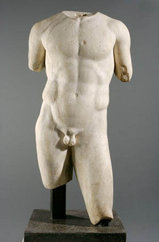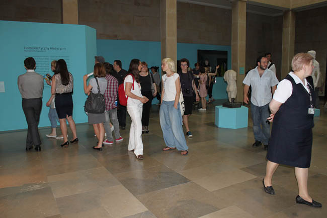 Homoerotyczny klasycyzm to tytuł kolejnej sekcji, w której przedstawiono rzeźby klasycznych i klasycystycznych aktów oraz portretów męskich przypominających antycznych bogów i bohaterów (m.in. Apollo Belwederdski, popiersie Aleksandra Wielkiego, czy Tańczący Satyr), ale także obraz Autoportret z puttem Zbysława Marka Maciejewskiego.