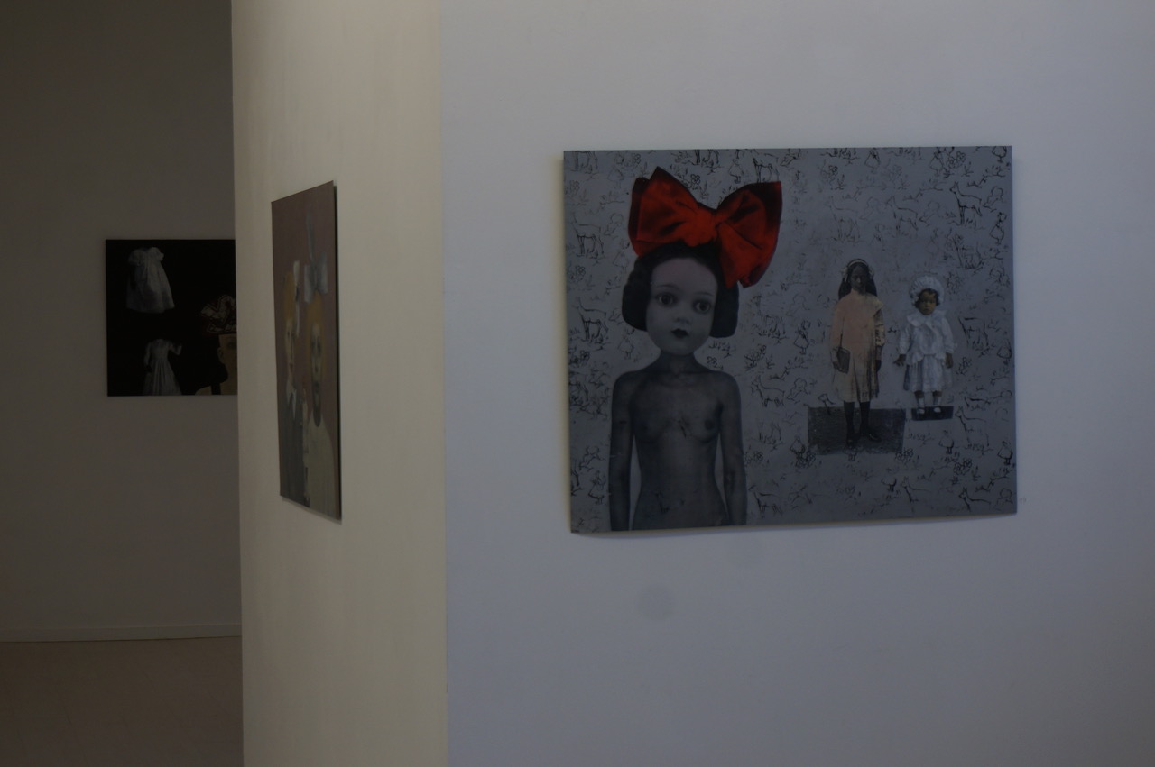 Na jednej z prac mała Krysia pozuje razem z Martą, swoją córką. Są na nim jak równolatki, siostrzane. Martę ubrała nawet w swoją sukienkę z dzieciństwa. Fantazja? Tak, ale też podkreślenie więzi krwi, wspólnej rodzinnej historii. Być może także tęsknota za niepoznanym wizerunkiem matki z dzieciństwa, i innych kobiet tworzących jej żeńską tożsamość. Krysi i Marcie towarzyszy lalka - Ania, znaleziona gdzieś na pchlim targu zabawka, która pojawiała się już we wcześniejszych pracach. Ania - towarzyszka, powierniczka, przyjaciółka, przewodniczka. Głos kobiecej intuicji. Czyż nie dlatego matki często dają swoim córkom lalki?