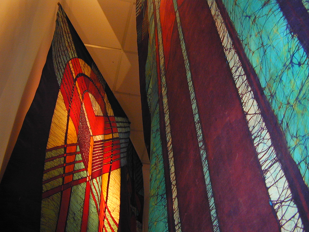 Takie zimne i nieprzychylne okna współczesności zainspirowały Dorotę Wielkosielec do realizacji jej najnowszych batików. Postawiła sobie za cel odmienić chłodny i pozbawiony emocji odbiór współczesnej architektury. Wybrała z niej takie elementy, które najlepiej służą jej twórczości: idealne zestawienia kształtów i zestrojenia barwne, wyraźne kontrasty i geometryczny rygor kompozycji. W pracach tych artystka starała się przełamać ograniczenia technologiczne, przez co chromatyka tkanin jest bardziej jaskrawa i kontrastowa. Autorka dąży do ukazania harmonii i równowagi, dlatego też jej kompozycje w większości oparte są na symetrii. Te ogromne płaszczyzny materii, wyściełające wnętrze galerii przenoszą nas do nierealnego świata, w którym rządzi barwa. Nieograniczone ramami kompozycje, swobodnie rozwijające się w przestrzeni i wykorzystujące rolę światła w ich odbiorze same tworzą okno na niezwykły, bardzo pociągający świat, w którym wiodącą rolę odgrywa malarstwo.