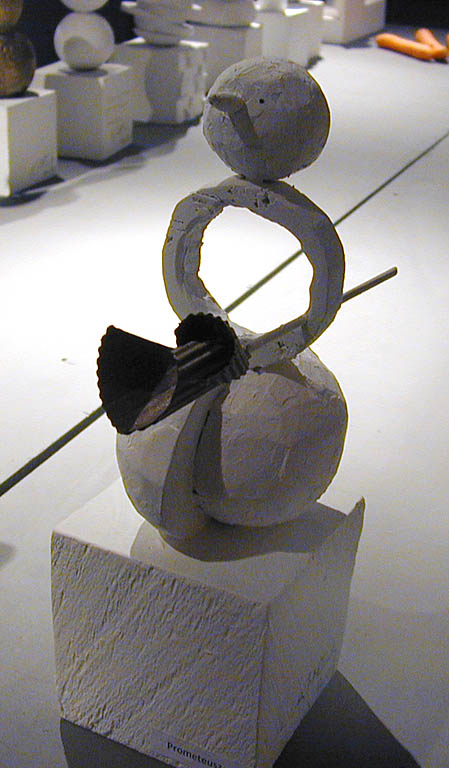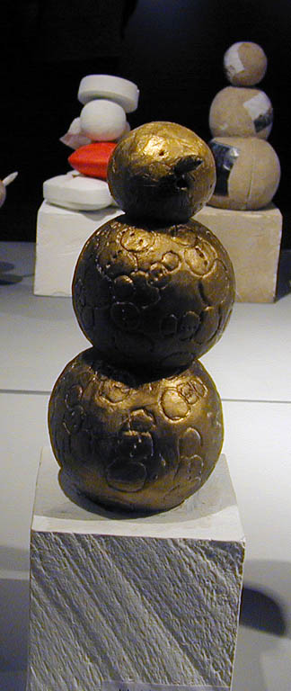 Autorka, osoba nie pozbawiona poczucia humoru o odcieniu nieco absurdalnym, stworzyła także specjalnie na tę prezentację cykl gipsowych rzeźb pod wspólnym hasłem "Bałwan dla Warszawy". Liczne zaprezentowane bałwany to makiety. Powstała idea, aby przynajmniej jeden z nich, powiększony do monumentalnej skali, został zrealizowany w stołecznej przestrzeni publicznej. Szanse na to są niewielkie, bo bałwany mają nieco kontrowersyjną tematykę. Jest w śród nich moherowy, cały czarny i włochaty, jest też farmaceutyczny, złożony z nadużywanych przez nas pastylek, kolejny to świąteczny nawiązujący do polskiego upodobania do świętowania, krzyżujący wielkanocne jajka z dynią z Halloween, kolejny to Gwiazdor sowiecko-amerykański, a są i inne. Bałwany Grażyny Bartnik to nasze bałwany, bałwany polskich przywar narodowych. Portretowanie przywar ma w sztuce długą tradycję, tyle że na ulicach gości raczej panteon naszych heroicznych zalet, uosobionych przez wielkich, dostojnych, walecznych i wiernych. A bałwan Bartnik to młodszy brat palmy Joanny Rajkowskiej. A wszak w Warszawie już z samą palmą jest dość kłopotów. Perspektywa dowcipnego bałwana przeraziłaby miejskich włodarzy nie na żarty. Bałwan nieodwracalnie inspirowałby do porównań.
