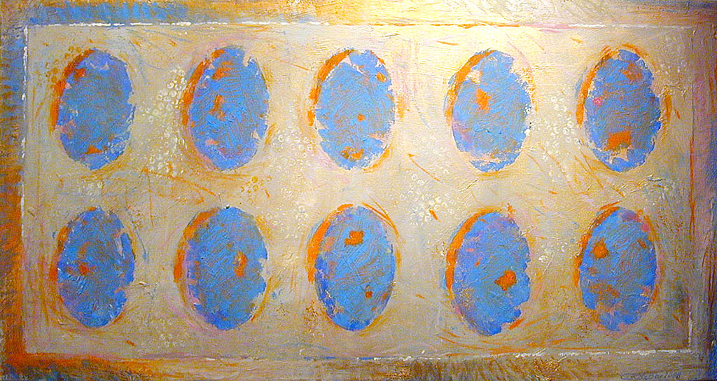 To część nowych kompozycji. W innych, też nacechowanych dynamiką, autorka ustawia w opozycji tło i fakturę. Równiutko założona muzealnym złotem powierzchnia obrazu rozbita zostaje wyciśniętymi prosto z tubki makaronami farby zasychającej w określonym rytmie, nasuwającym skojarzenia z zapisem pisma i matematycznymi wyliczeniami. Konotacje naukowe są tu bardzo na miejscu, gdyż inspiracją dla autorki do namalowania tych obrazów stały się osiągnięcia współczesnej fizyki, badające budowę materii. Świat, według tych teorii zbudowany jest z rozmaitych cząsteczek zawieszonych w próżni. Nie jesteśmy w stanie zobaczyć, jak one wyglądają, lecz z obliczeń naukowców niezbicie wynika, że istnieją. Są tak małe, że prawie nie mają masy. Jak wyglądałyby, gdybyśmy mogli je powiększyć i obejrzeć? Odpowiedź Kilianowicz-Bareckiej jest oczywiście tylko jedną z możliwych, ale interesującą propozycją obrazowania niepostrzegalnego ludzkim okiem świata.