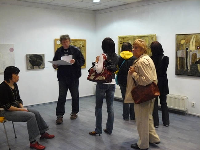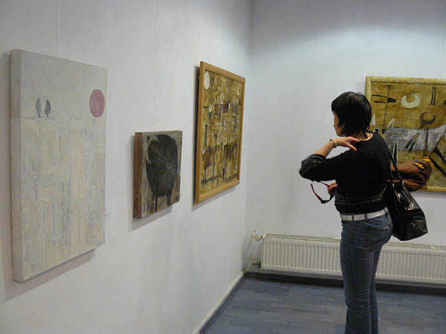 Zresztą Hanna Karasińska-Eberhardt studiowała na warszawkiej ASP w pracowni Tadeusza Dominika, a dyplom zrobiła u Stefana Gierowskiego. I szkoła mistrzów pobrzmiewa w pracach artystki. Szczególnie jeśli chodzi o dwa obrazy z cyklu „Sakrum” zdecydowanie wybijające się (pozytywnie!) spośród większości prezentowanych przez malarkę płócien. Są to prace z pozoru niefiguratywne, zbudowane z opartych na geometrycznych podziałach płaszczyzn prawie monochromatycznych kolorów. Prawie, bo atystka delikatnie ryje w strukturze farby poziome kreski, symbolizujące tytułową „Drabinę Jakubową”. Zupełnie innego charakteru są pozostałe, kipiące kolarami obrazy artystki, które wypełniają fantastyczne twory rodem z prac surrealisty Joana Miró. Artystka zalicza je do swoich komercyjnych prac i... ma rację. Bo obrazy mogą przyciągać atrakcyjnością wizualną, ale właściwie nie wnoszą niczego interesującego do polskiej sztuki.