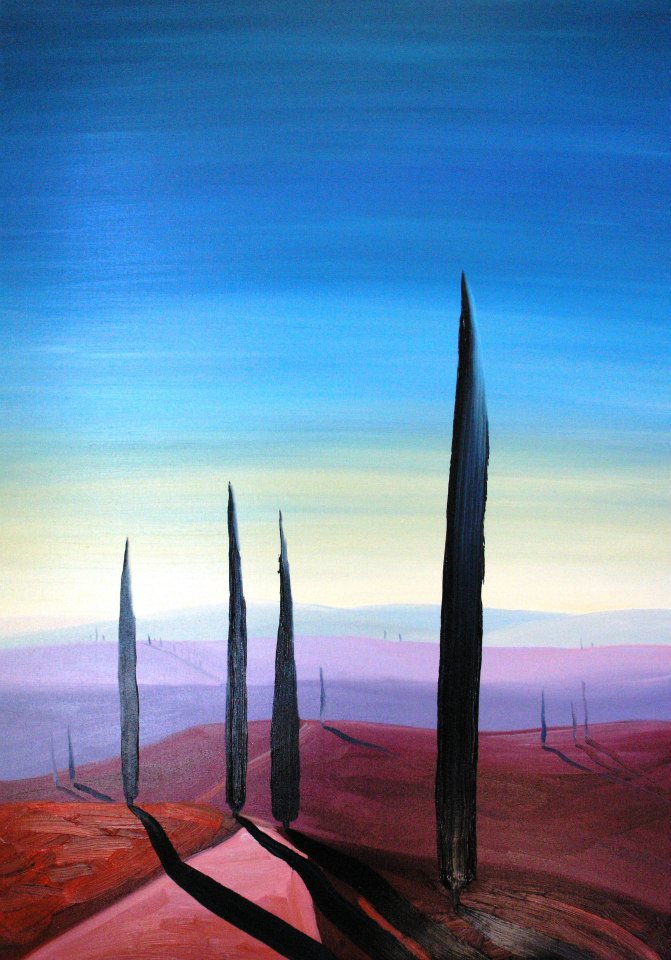 Temat pejzażu Toskanii jest przez Malinowskiego traktowany jako dążenie do znalezienia symbolu - synonimu tego krajobrazu. Artysta coraz bardziej podąża w kierunku abstrakcyjnej formy, która pomimo syntetycznych odniesień wciąż stanowi ekspresyjny, organiczny i wypełniony emocjami przekaz.