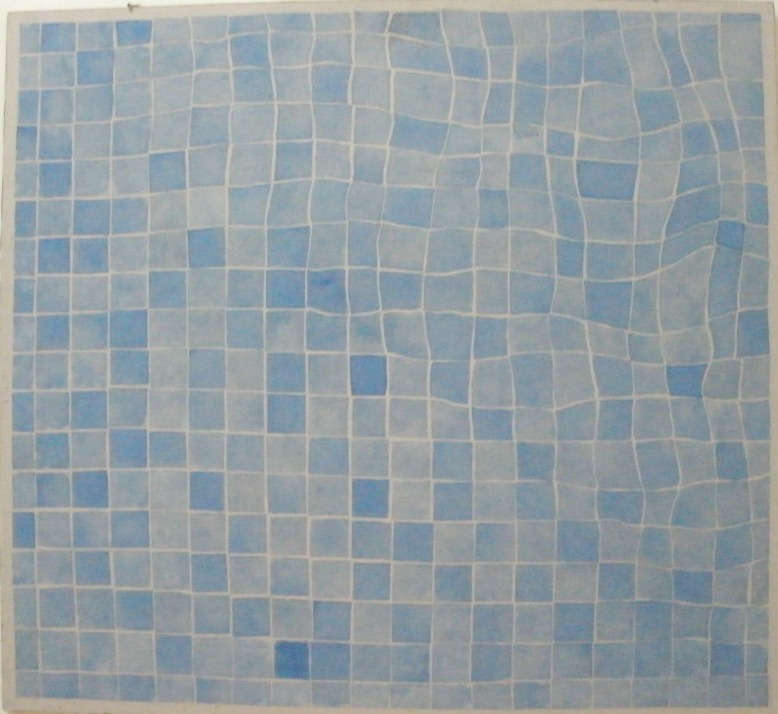 Praca Mostowskiej składa się z kilku tkanin, imitują one dno basenu – błękitne kostki terakoty, które ulegają deformacji pod wpływem ruchu wody. Kto nie zna takiego widoku? Jedne z nich są wykonane z filcu, inne z farbowanej i naklejanej tkaniny. Budzą skojarzenia z relaksem jaki przynosi pływanie. Poza tym wzory , jakie tworzy ruchoma woda są hipnotyczne, niekiedy nie można oderwać wzroku od ruszających się płytek na dnie basenu. Takim fascynacjom ulega też sama artystka, która z tego faktu postanowiła uczynić motyw dla swojej instalacji.