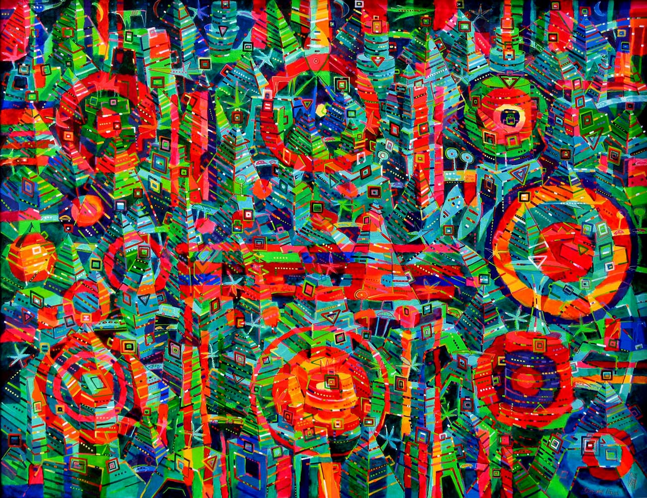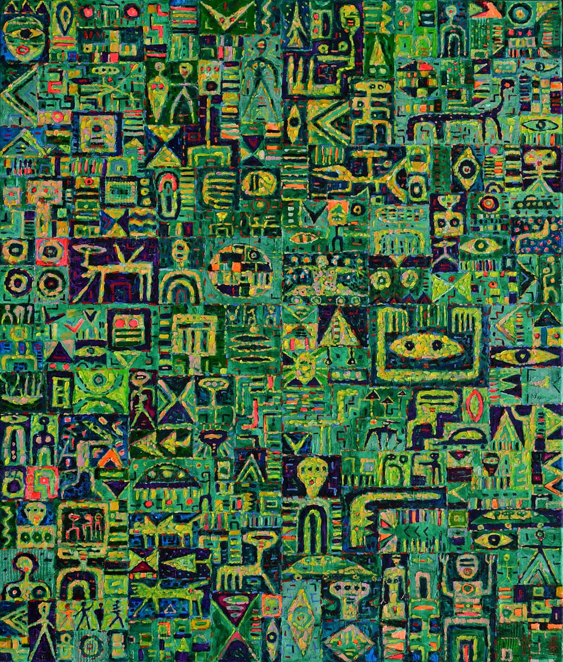 Jego wielowątkowe, pulsujące obrazy, grafiki, fotografie łączą abstrakcyjne formy z organicznymi i geometrycznymi konturami, urzekają kolorystyką, nieograniczoną paletą barw. Sprawiają wrażenie, że pochodzą z innych, pozaziemskich cywilizacji. Z rozwagą mówią o istocie i sensie istnienia, potrzebie poznawania natury i mechanizmów życia; ostrzegają przed burzeniem ładu i porządku zastałych struktur. Są zapisem doznań i oczarowań, wzruszeń i irytacji. Stanowią bardzo osobiste, przekonywujące odczytanie metafizycznego i egzystencjalnego wymiaru rzeczywistości. Są wśród nich obrazy „świecące”, zaczarowane, odkrywające swoją piękność w blasku światła ultrafioletowego. Urzekają niezwykłymi, efektownymi impresjami ujawniającymi wszystko to, co w świetle normalnym, dziennym jest niewidoczne, odległe jak kosmiczne mgławice, konstelacje gwiezdne.