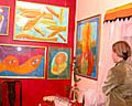 magicznym nastroju galerii, przeniosły gości w świat bajkowy, pełen radości i ciepła, w który królują anioły z elfami. Pojedyncza praca Joanny Gołaszewskiej - zmysłowy akt utrzymany w czerwonej tonacji, dopełniała wrażenia harmonii wnętrz i prac.