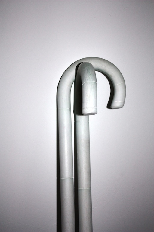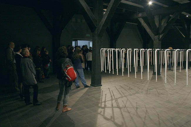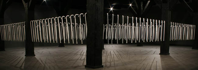 Instalacja site specific Biały cień, z serii Long Life Learning, jest swoistym apogeum zastosowania lasek jako środków wyrazu. W przestrzeni między charakterystycznymi drewnianymi słupami „unoszą się” setki lasek, przypominających te używane przez niewidomych. "Wnętrze jest więc wypełnione substytutami wzroku, którymi posługują się niewidzący, a ich ogromna liczba stawia odbiorcę w niecodziennej sytuacji, w której konfrontacja z tymi instrumentami dotykowego „widzenia” czy protezami, pomocnymi w rozpoznawaniu otoczenia przez ślepych skłania do namysłu nad sposobami percepcji rzeczywistości i zwraca uwagę na sensomotoryczny aspekt tych procesów. Uruchamia się inne widzenie, przekraczające to, co widzialne, na rzecz tego, co wewnętrzne, dotykowe, cielesne i tym samym ukazujące te kategorie postrzegania świata, które na co dzień pozostają uśpione." (Marta Smolińska, fragment eseju z katalogu wystawy)