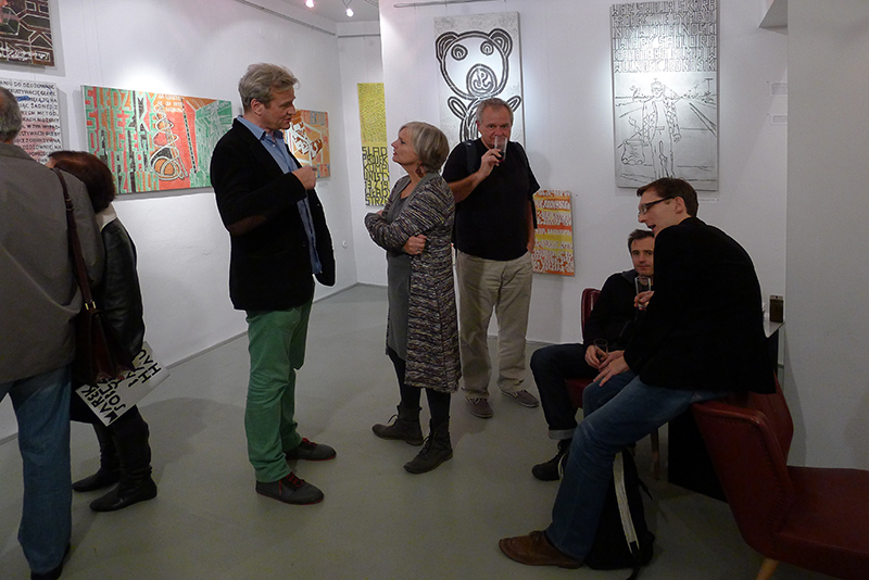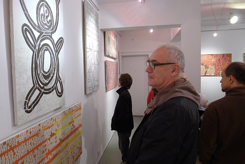 Jak zwykle obrazy Marka Sobczyka mówią i choć czasem są to rozwlekłe monologi, czasem lapidarne hasła - zawsze trafiają w sedno. Mówią też dosłownie - zapisanym na płótnie tekstem i znakiem, rozpoznawalną przez widza formą i kolorem. Są dla widza jak rebus do rozszyfrowania. Zatem obejrzyjmy wystawę i odgadnijmy hasło ukryte w obrazach.