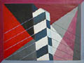 przygaszone, geometryczne figury tworzą kompozycję,