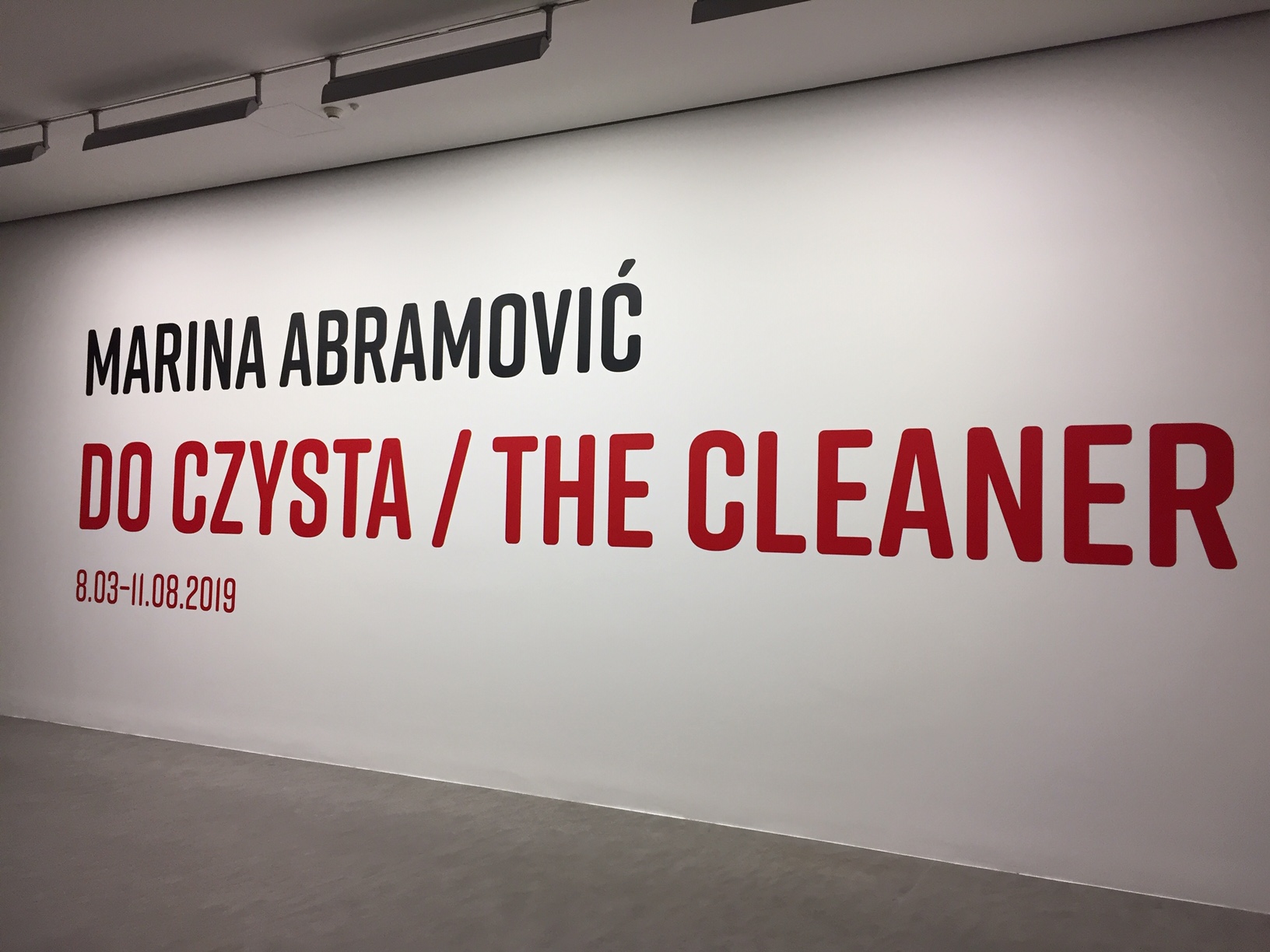 Od 8 marca 2019 w toruńskim Centrum Sztuki Współczesnej oglądać można retrospektywną wystawę prezentującą 50 lat twórczości Mariny Abramović. "Do czysta / The Cleaner" to największa w Europie wystawa około 120 prac artystki ukazujących rozwój jej twórczości, począwszy od malarstwa lat 60., kończąc na wiernie odwzorowanych i sfilmowanych performansach. Cała przestrzeń wystawy uzupełniona jest licznymi wywiadami i wypowiedziami artystki.