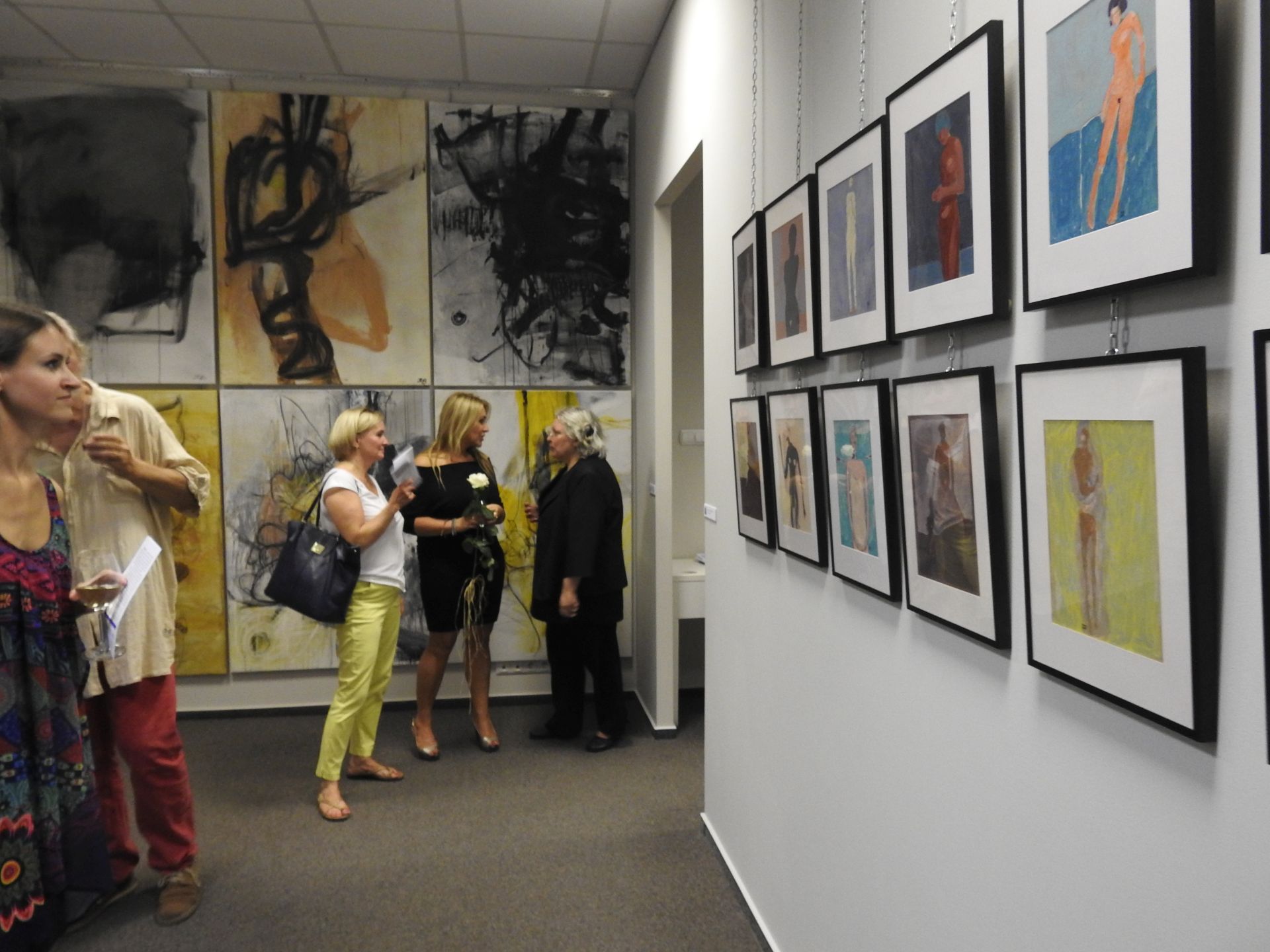 W wystawie uczestniczą: Grażyna Adamska-Jarecka (Toronto), Anna Carpenter (Warszawa), Dorota Cieślińska-Brodowska (Warszawa), Aleksandra Hajdas-Rutkowska (Warszawa), Ewa Held (Paryż), Izabela Katreniok (Nowy Jork), Mariola Landowska (Lizbona), Bożena Wiszniewski (Melbourne). Do powstania ich nieformalnej grupy przyczyniły się media społecznościowe, ułatwiając ożywienie relacji powstałych podczas studiów w warszawskiej Akademii Sztuk Pięknych i nawiązanie nowych artystycznych znajomości. I nie jest to tylko signum temporis. Ten wirtualny rodowód grupy to także swoiste in-between.