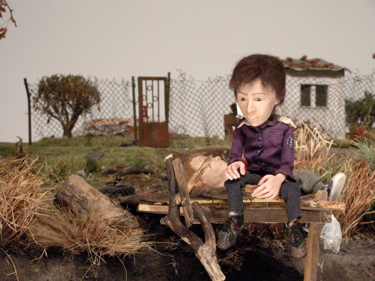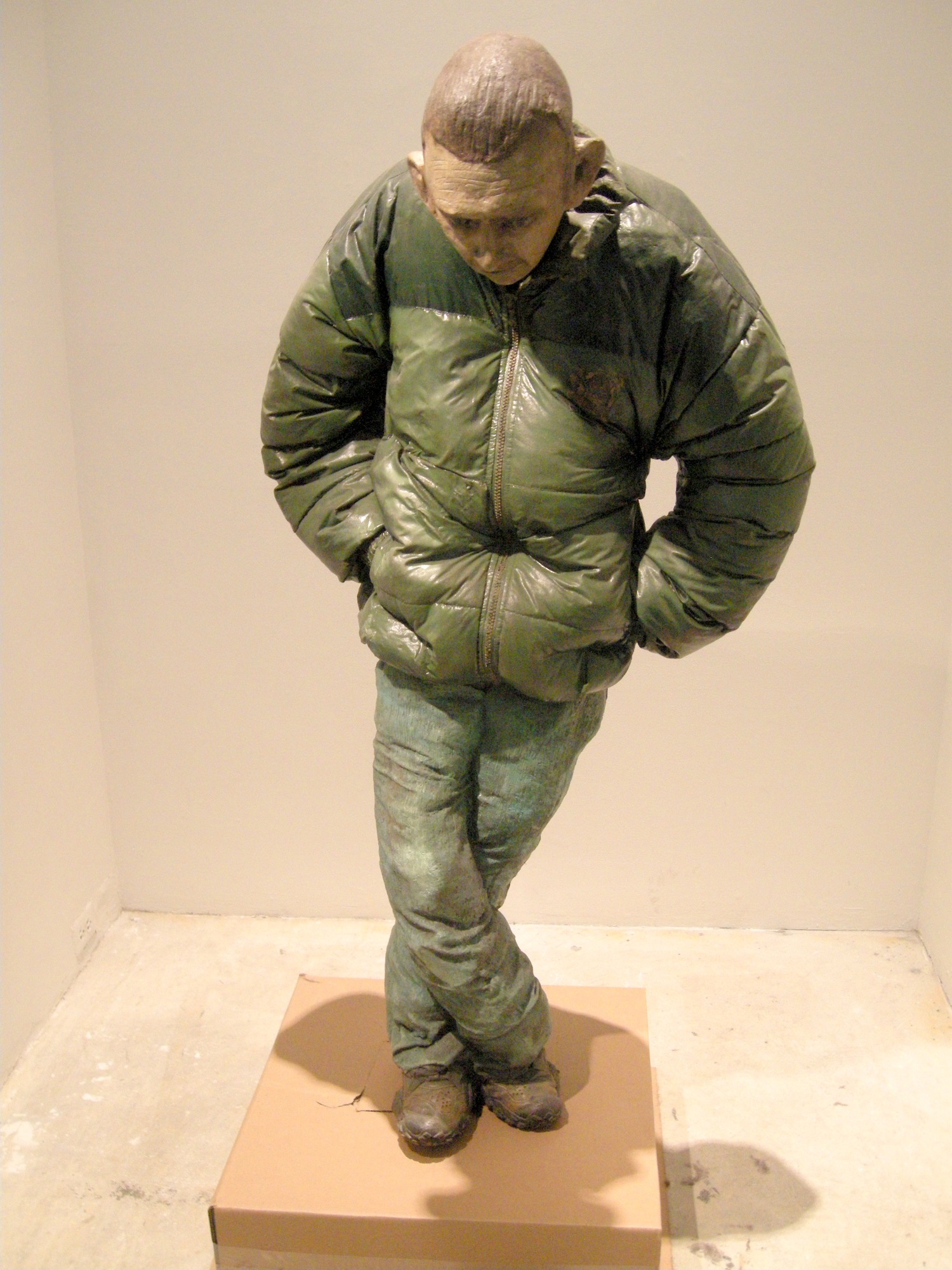 Z informacji udostępnionej zwiedzającym dowiadujemy się, że rzeźba powstała w 2008 roku w hołdzie osobom z marginesu. Bezdomny z warszawskiej Pragi o ksywie Guma, z powodu jego „skłonności” do ciągłego kołysania się, uosabia tych członków społeczności o których zbyt często i zbyt łatwo się zapomina. Po śmierci Gumy, Althamer stworzył tę rzeźbę zapraszając do współpracy grupę miejscowych dzieci i umieścił ją na zewnątrz baru do którego Guma zbyt często zaglądał. Postać została ustawiona na sprężynach umożliwiających jej delikatne wahanie się w różne strony.