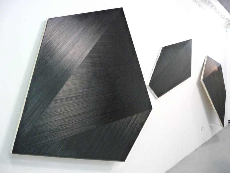 Czerń dyskretna, grafitowa, z metalicznym połyskiem ujawnia się w serii trzech rysunków pokazujących poprowadzoną linię drutu wraz z zaznaczoną linią jego cienia. Powstałe abstrakcyjne kompozycje, linearne abstrakty stanowią zapośredniczoną obrazowość z zaobserwowanej i zarejestrowanej przez artystę rzeczywistości.