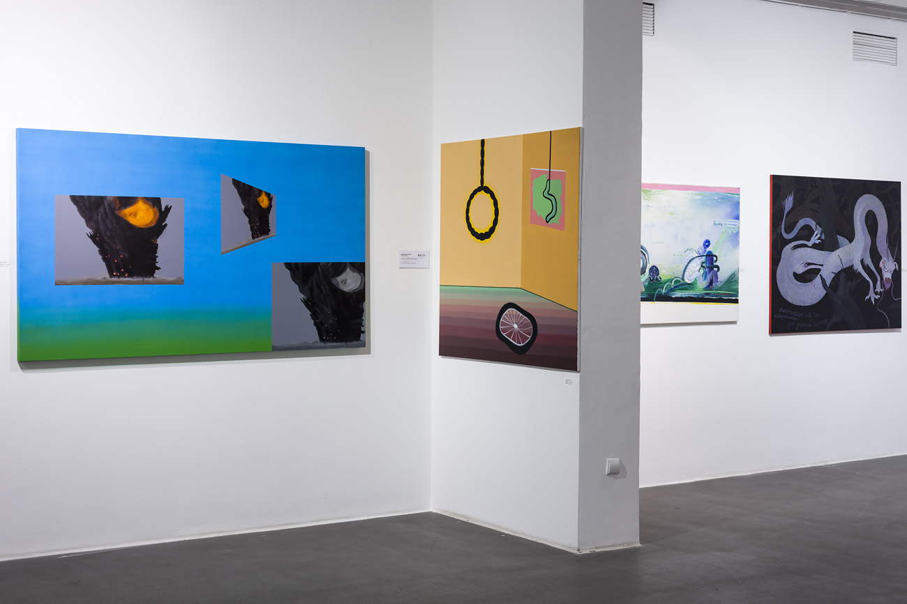 Nagrodzone obrazy Karoliny Jabłońskiej z Krakowa - laureatki II nagrody w wysokości 20 tys. zł ufundowanej przez Marszałka Województwa Śląskiego - przedstawiają ludzi lub łączące ich relacje. Te płaskie, świadomie naiwne, prymitywistyczne kompozycje kreują skrajnie indywidualny świat alternatywny przesączony specyficznym poczuciem humoru, dziwnością i nutką horroru - tak opisał obrazy Karoliny Jabłońskiej członek jury Ryszard Ziarkiewicz.