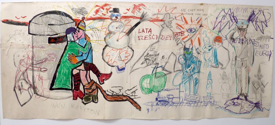 Formacja artystyczna Gruppa istniała między 1982 a 1992 rokiem, a jej legenda zdaje się, wraz z kolejnymi dekadami, coraz bardziej umacniać. Tworzyło ją sześciu bardzo młodych artystów, o zróżnicowanych i bardzo silnych osobowościach. Każdy malował po swojemu, ale czasem łączyli się w pary i tworzyli wspólne prace. I ten właśnie niewielki, ale bardzo ciekawy fragment ich dorobku przypomniano na wystawie. Łączyli swe siły - Sobczyk z Woźniakiem, Sobczyk z Modzelewskim, Woźniak z Grzybem, a nawet wszyscy razem na jednym kartonie. Czasami malowali siebie nawzajem, bywało, że w zabawnych konfrontacjach. Jeśli Modzelewski uwieczniał Kowalewskiego jako tułów bez głowy, to Kowalewski Modzelewskiego jako głowę bez tułowia. Bo oczywiście sporo w tych pracach było zgrywy, spontanicznych towarzyskich wygłupów.