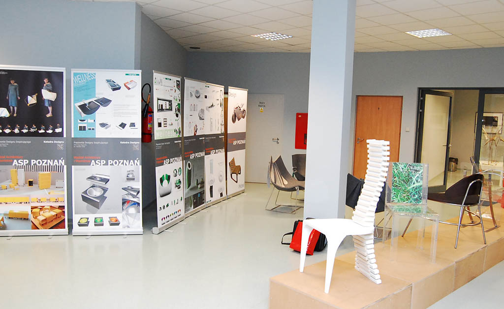 Podsumowaniem Dnia Designu był wernisaż trzech wystaw "dizajnerskich". Każda z nich miała nieco inny charakter. Znana już dobrze z prezentacji w Warszawie i Tarnowie Podgórnym prezentacja AXOR Massaud Inspiracje przygotowywana w trybie biennale przez HansGrohe to fotograficzna impresja młodych polskich fotografów zrzeszonych w Studio Melon. Niezwykłe zdjęcia inspirowane armaturą projektu Jean-Marie Massaud udowadniały, że wyjątkowy dizajn może być sztuką i może podjudzać sztukę. Wystawa pokonkursowa 6 edycji PRODECO 2007 pokazywana wcześniej w warszawskiej Domotece, w Poznaniu zyskała na półprofesjonalnej i estetycznej aranżacji, prezentując się naprawdę ciekawie. Najciekawszą jednak okazała się wystawa najlepszych dyplomów z designu Akademii Sztuk Pięknych w Poznaniu oraz Politechniki Poznańskiej. Pokazała zarówno zrealizowane projekty, jak i projekty w formie plansz. Widać w nich wiele pomysłowości, uczciwe podejście do materiału, realistyczne otwarcie na przemysłowe wdrożenia i brak lęku w kreacji czyli to co najważniejsze - liczenie się ograniczeniami, ale nie ograniczanie się nimi. To dobra wróżba na przyszłość i konkretna propozycja dla polskich firm, zwłaszcza meblowych.