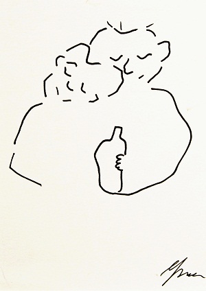 Joanna Szczepkowska wystąpiła w nowej, zaskakującej roli autorki prac plastycznych. Po raz pierwszy zdecydowała się na upublicznienie swoich rysunków w 2000 roku. Wykorzystała je w zbiorze felietonów Drugie podwórko. Delikatne niczym pajęczyna, w sposób aluzyjny odwoływały się do treści poszczególnych tekstów, lub stanowiły rodzaj dyskretnego ozdobnika. Taki był początek artystycznej przygody, która z czasem przerodziła się w autentyczną pasję. Rysunki Joanny Szczepkowskiej przyciągają wzrok wyrafinowaną prostotą i czystością formy. Wizualnie urodziwe, działają na wyobraźnię, prowokują do rozszyfrowania treści zapisanych na nieskazitelnej bieli papieru nieomylną czarną kreską. Nie szuka wielkich tematów, odnajduje je w codzienności. Bohaterami jej rysunków są zwykli ludzie przeżywający swe małe lub wielkie dramaty. Anonimowi przychodnie, w tajemniczy sposób wyróżniający się z tłumu, ludzie z marginesu. Z natury jest ogromnie wrażliwa, przepełniona uczuciem empatii, stąd jej Pijacy i Menele są pełni życia, radośni; nie budzą odrazy, ale sympatię. Niektóre wątki prowokują do kolejnych opracowań. Tak, więc powraca wizerunek bezdomnego skrzypka. Przejmująca w swej wymowie metafora losu zagubionych, zapomnianych artystów… Postacie są zazwyczaj pozbawione atrybutów; autorka wprowadza je, kiedy uzna, że ich obecność buduje dramaturgię. Taką rolę pełni śmietnik, miseczka na jałmużnę i filiżanka stojąca na atrapie kawiarnianego stolika. Większość prezentowanych na wystawie rysunków, ma formę otwartą. Giętka, pewnie prowadzona linia jedynie częściowo wydobywa zarys postaci. Ale potrafi też zapętlić się w miękki celnie zdefiniowany kształt. Spotkamy również przykłady kompozycji budowanych przy użyciu krótkich odcinków pospiesznie położonej ekspresyjnej kreski. Nie budzi zdziwienia fakt, że wszechstronnie uzdolniona i wciąż poszukująca nowych form wypowiedzi autorka, po długim okresie fascynacji rysunkiem, sięgnęła po kolor. Prezentowane na wystawie obrazy zostały zrealizowanie w ciągu trzech minionych lat przy użyciu techniki komputerowej. Graficznie czysty rysunek zastąpiła zróżnicowaną plamą koloru, położonego cienką matową warstwą lub gęstniejącego do emalierskich połysków. Eksperymentuje poszerzając zakres rozwiązań formalnych. Próbuje wypowiedzi w różnych konwencjach. Bywa oszczędna jak w moim ulubionym Swetrze, lub szczelnie na zasadzie horror vacui - zapełnia cały prostokąt kompozycji sylwetkami barwnie ubranych bywalców kawiarni. Znacznie poszerzyła i wzbogaciła zakres inspirujących ją tematów. Zaczyna rozwijać je w cykle. Warto w tym miejscu wspomnieć intrygującą serię prac, do której należy zaliczyć Ciało oraz jego powiększone do nadnaturalnych rozmiarów fragmenty - Usta i Ucho. W szeregu prac wykorzystuje fotografię (m.in. trzy Autoportrety). Wierzę, że zwiedzanie wystawy Joanny Szczepkowskiej było dla Państwa równie fascynującym przeżyciem, jak mój pierwszy kontakt z jej pracami.