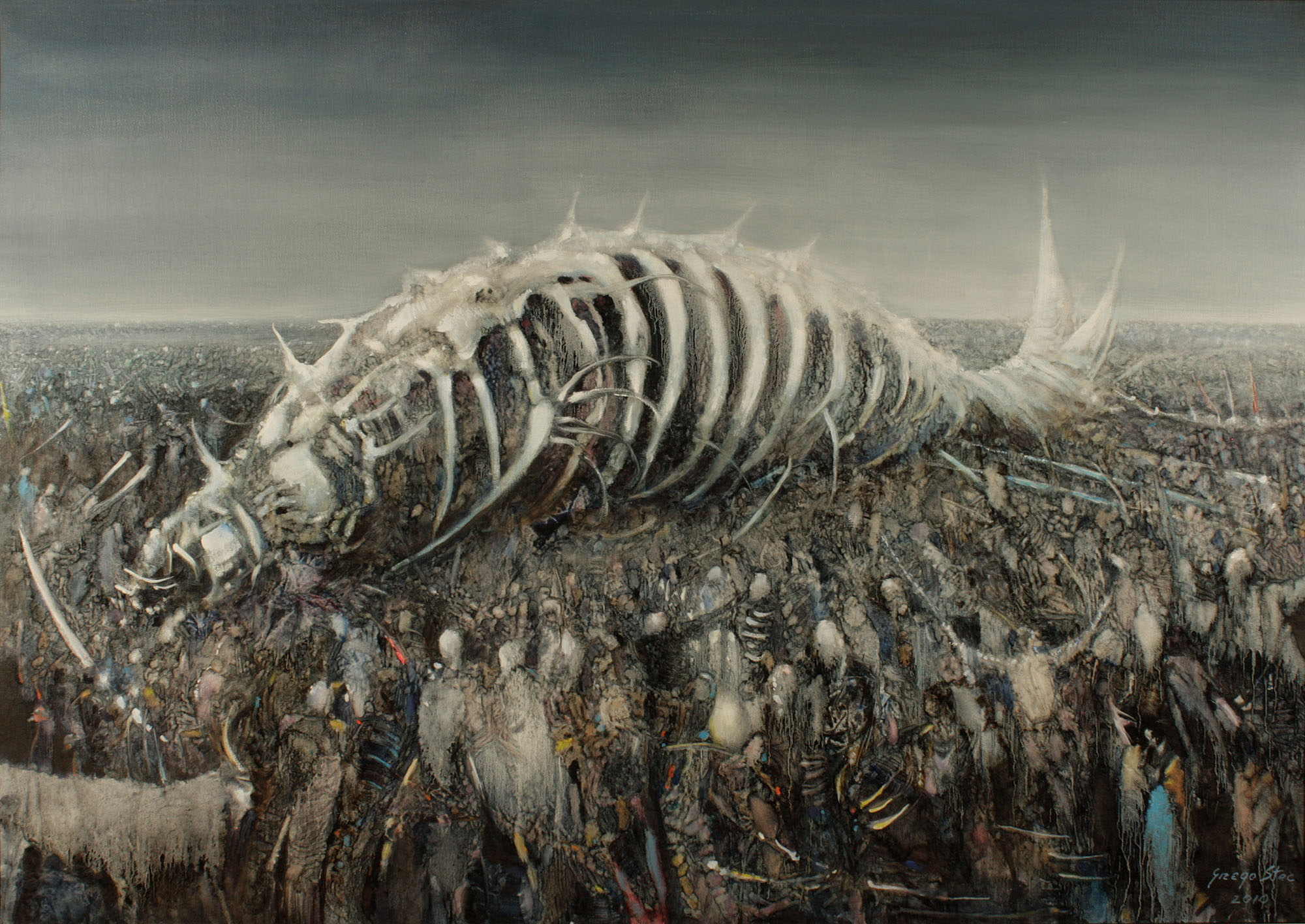 „Artysta nie jest […] dzieckiem szczęścia, nie ma prawa żyć bez obowiązków – ma wykonywać ciężką pracę, która będzie niejednokrotnie jego drogą krzyżową. Musi zdawać sobie sprawę z tego, że wszystko, co zrobi, każde jego uczucie i każda myśl składa się na niedające się wprawdzie dotknąć ręką, ale bardzo konkretne tworzywo, z którego powstają jego dzieła”1. Pamiętam dobrze, że gdy po raz pierwszy czytałam te słowa Wassilego Kandińskiego, od razu przyszedł mi do głowy Grzegorz – właśnie jako przykład artysty, dla którego sztuka jest obowiązkiem. Obowiązkiem nieustannego mierzenia się z pytaniami podstawowymi: o porządek świata, o kondycję człowieka, o sens (czy też jego brak) przemijania. Obowiązkiem mówienia czegoś istotnego, pobudzenia odbiorcy do myślenia. I choć wypracował własny styl dla wyrażenia owych dociekań, to ów intelektualny aspekt twórczości wydaje się szczególnie wart podkreślenia.