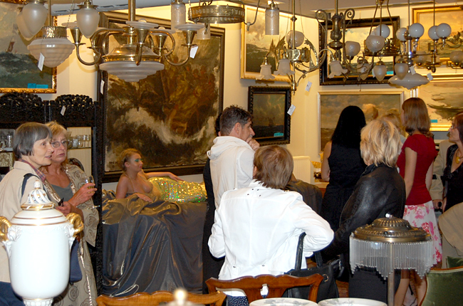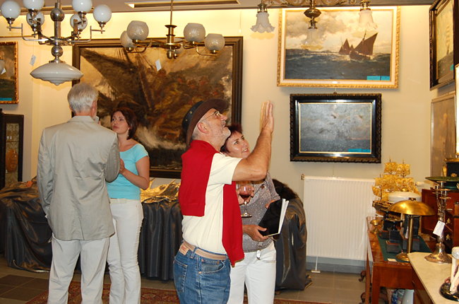 Organizatorzy zadbali o nastrój w każdym calu. Z głośników cicho płynęły odgłosy morskich fal, od czasu do czasu dał się usłyszeć krzyk mew, tłumy zwiedzających podziwiały zebraną przez Sopocki Dom Aukcyjny ofertę. Zebrani goście na dłużej zatrzymywali się przed obrazem "Sztorm" Emmanuela Mané-Katza by podziwiać mistrzowsko oddaną scenę oraz dwie półnagie syreny, które leżąc na specjalnie przygotowanym łożu cieszyły oko nie tylko panów.
